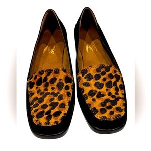AEROSOLES HEELREST LEOPARD PRINT CALF HAIR LOAFERS BLACK SIZE 6