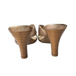 AEROSOLES Miswrote Mid Heel Mules Heels Size 7.5 Gold Embossed Sandal
