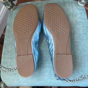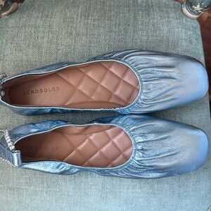 AEROSOLES RACHIE TurquoiseMETALLIC LEATHER BALLET FLATS W/REMOVABLE ANKLE STRAP