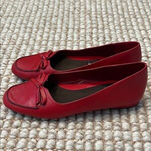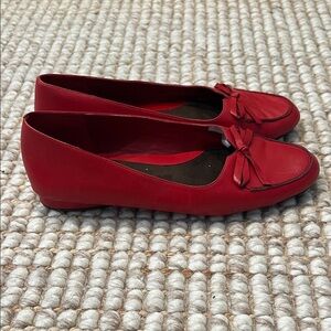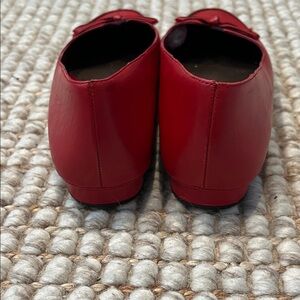 Chic red flats with a stylish bow. Comfortable and versatile for everyday wear.