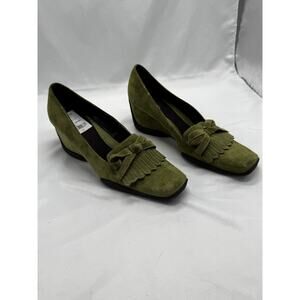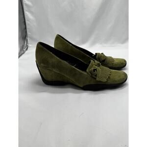 AEROSOLES SZ 10 M GREEN SUEDE LEATHER TASSEL WOMEN PUMP LOAFERS Academia Work