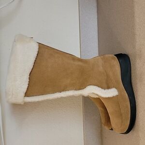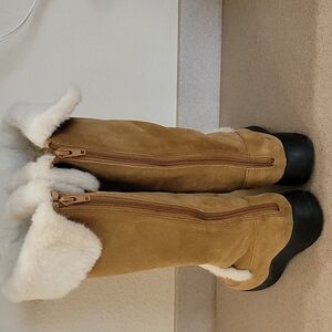 Aerosols tan boots (sz 6-1/2) The boots have a zippered up the back. They are decorated with faux fur. Very good condition. They have a 2" heel