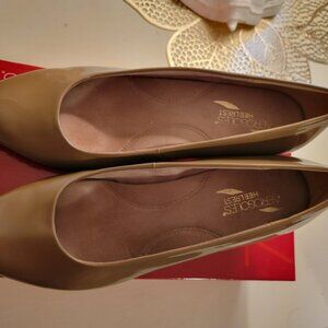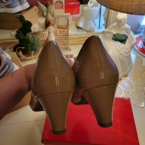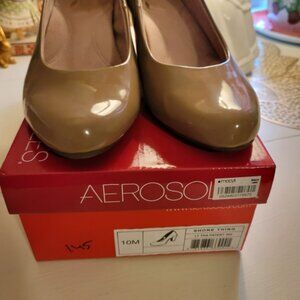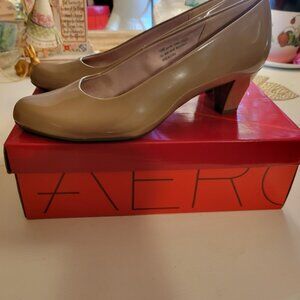 These AEROSOLES tan heels feature a smooth leather-like material and a comfortable mid-height heel, perfect for professional and formal settings. The rounded toe and simple silhouette offer a timeless and versatile style.