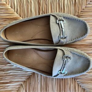 Chic suede loafer with ultimate comfort details. Memory foam footbed, flexible suede uppers, wide fit, and easy on/off comfort. Only worn a handful of times last season. Great neutral taupe color that goes with everything. Highly rated for comfort! Professional product photos show the shoe in gray - the shoes I am selling are in the taupe color (as shown in my photos). A great Fall staple shoe.