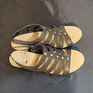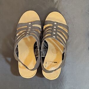 AEROSOLES CAKE SALE ANKLE STRAP OPEN TOE 5 BAND STRAP SANDAL SIZE 8 1/2M COLOR BLACK MADE WITH ALL MAN MADE MATERIALS HEEL HEIGHT MEASUREMENTS APPROX 2.25"INCHES THIS ITEMS IS PRE-OWNED EXCELLENT CONDITION YOU MIGHT MISTAKE FOR NEW CHECK THE PICTURES(NO LOW BALL OFFER NO TRADE BUNDLE FOR BETTER DEALS RESPECT)