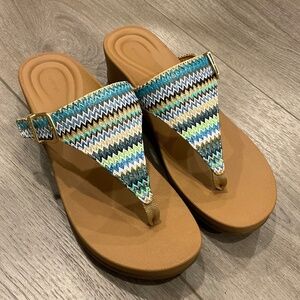 AETREX Kate Thong Wedge Sandal Blue Size 9-9.5