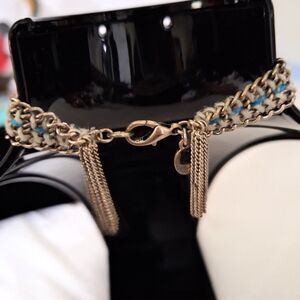 This is an American Eagle Outfitters chain bracelet with chain fringe. This is a really nice piece of jewelry with a great look to it. It is reminiscent of a Native American vibe, but definitely also has a hippie feel to it as well.