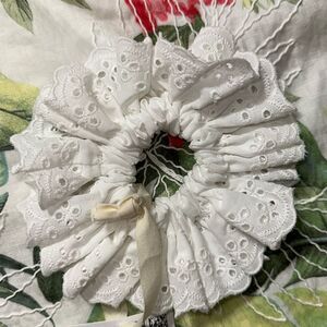AE White Double Ruffle Scalloped Eyelet Embroidered Large Hair Scrunchie