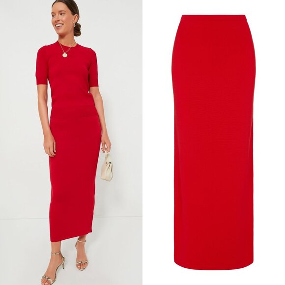 AEXAE Red Knit Maxi Skirt Size S NWT – Luxury Ribbed Stretch Skirt