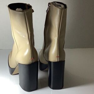 AEYDĒ Berlin Square Toe High Heel Platform Booties - Latte