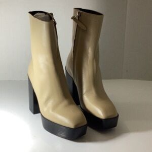 AEYDĒ Berlin Square Toe High Heel Platform Booties - Latte