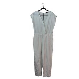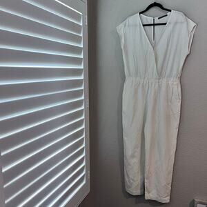 A&F Abercrombie and Fitch Short Sleeve Linen Blend Jumpsuit Butter Yellow Large