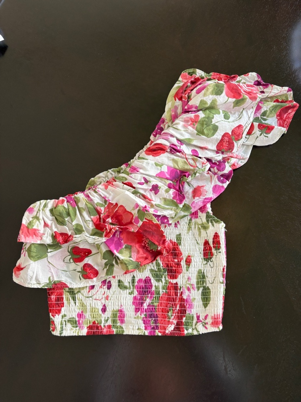 Abercrombie & Fitch Floral Asymmetrical One - Shoulder Ruffle Top