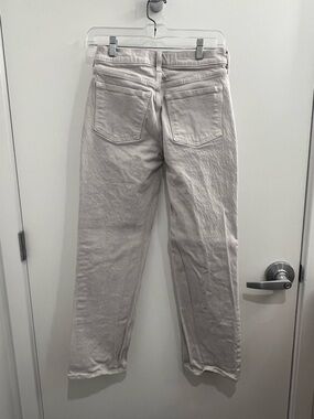 24 Short. Classic low rise baggy jeans. Neutral stone color. Clean, simple design with five-pocket styling. Versatile and easy to style.