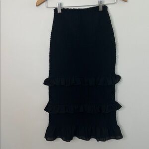 A&F Black Smocked High Waist Midi Tiered Body con Stretch Ruffle Skirt Size XXS