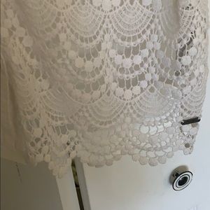 Fun and one of a kind embroidered/knit button down top. Open front, closed back. Wear a Bralette, tank, or tube of your choosing under this top.