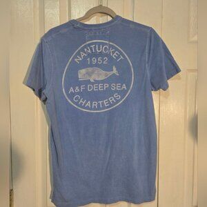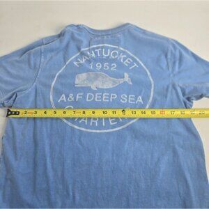 A&F blue t-shirt with a graphic design on the back. Casual and stylish. See measurement pics for approx size