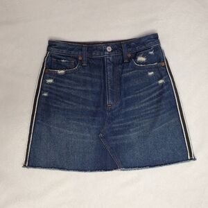 A&F Blue Side Stripe Distressed Denim Mini Skirt