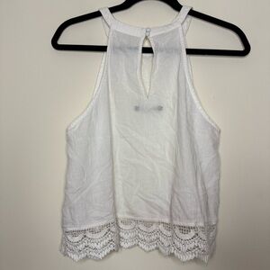 A+F Boho 100% Cotton Flowy White Swing Lace Halter Style Cropped Tank Top