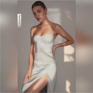 Please note: first 3 photos are only shared for fit reference. The actual color of the dress I’m selling is a nice pearly shade, NOT the taupe-y shade.