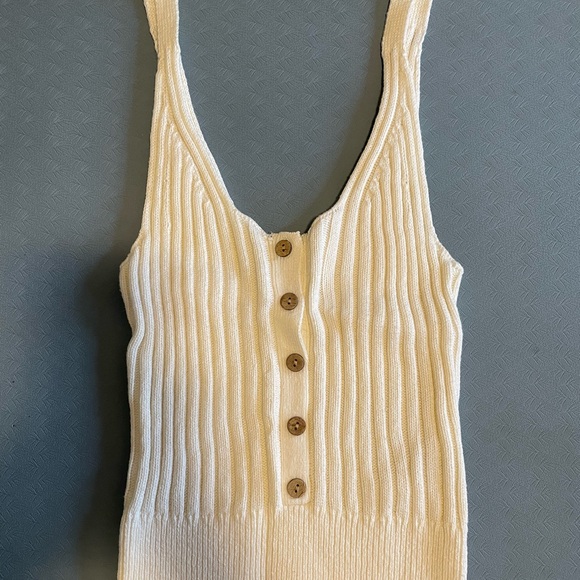 Stylish cream ribbed tank top with button-down front. Perfect for casual wear.