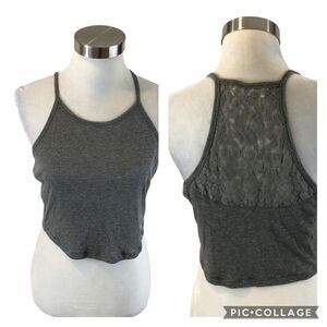 A&F Cropped Grey Tank Top With Lace Back Medium