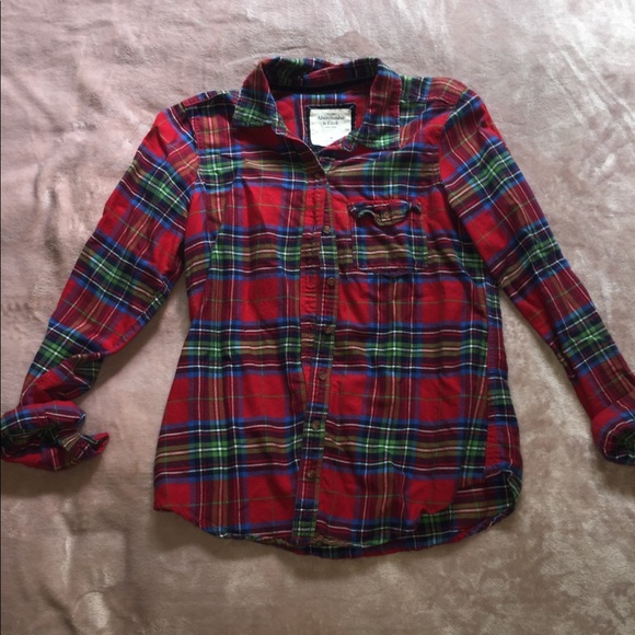Abercrombie & Fitch red/blue/green long sleeve flannel. Only worn twice, great condition.