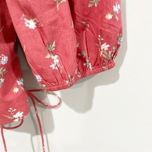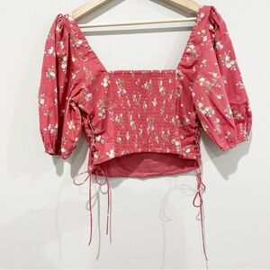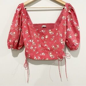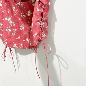 A&F Floral Puff Sleeve Lace-Up Poplin Corset Scoopneck Top Size Large