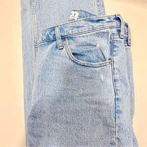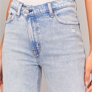 Abercrombie 90s High Rise Relaxed Jean in Light with Criss-across waistband. Size 29 Long