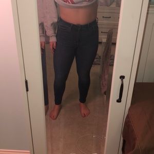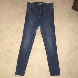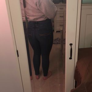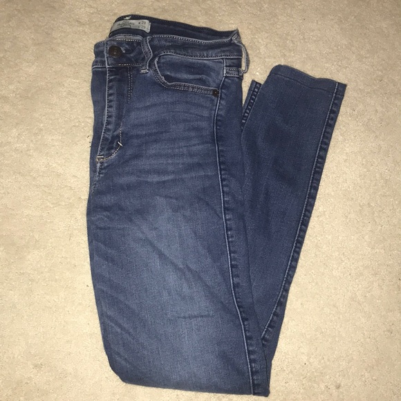These are the BEST jeans I have EVER owned!! I have just grown out of them. The only minor flaw is the left pocket on the back but is easily fixable with a flat iron! These are a dark wash, HIGH RISE, jeans from Abercrombie & Fitch, size 6 short.. will model if requested :) Price Firm!
