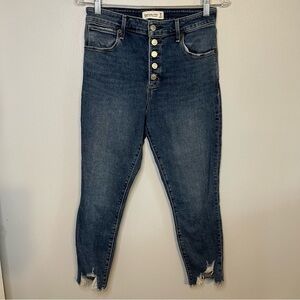Abercrombie & Fitch Women's High Rise Super Skinny Ankle Sz 28 Distressed Button Fly