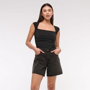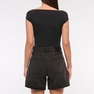 High rise early 2000's-inspired denim with a loose fit throughout the leg, and a 6 inch (15 cm) inseam. Vintage stretch denim in a black wash, with clean hem.