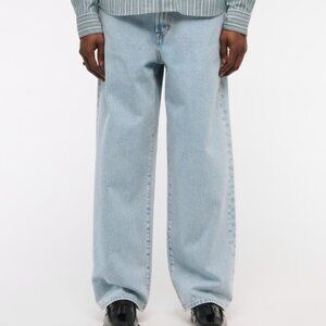A&F Men's Rigid Denim Ultra Baggy Jean, Light Wash, 32Wx28H, EUC