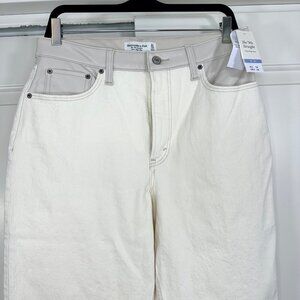 A&F Mixed Fabric Ultra High Rise 90s Slim Straight Jean 31/12 Short - NEW