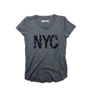 A&F NYC Sequin T-Shirt Women's XS Extra Small Gray Cotton Casual To