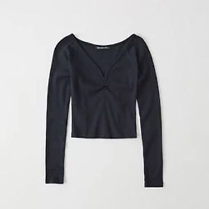 Slim-fitting ribbed top with cool notch-neck detail. Long sleeves and straight hem. Worn once.