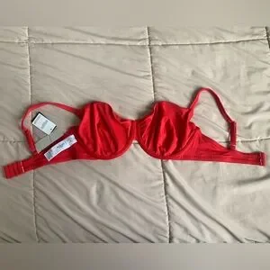 Stylish red ribbed bikini top. Perfect for beach days. Size M. Curve Love. NWT.