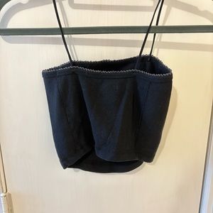 Abercrombie & Fitch black cropped ribbed tank top with scalloped top edge