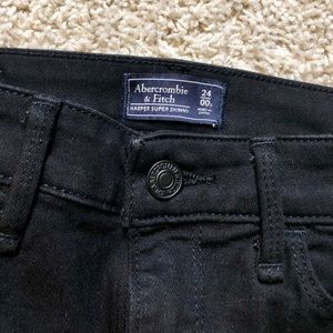 Abercrombie Harper (Super Skinny) Jeans in Black denim with busted knees! Very comfortable and the busted knees are a cute detail on any outfit dressed up or dressed down!