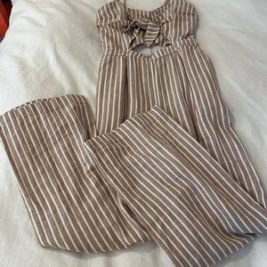 Brown and White Striped Romper