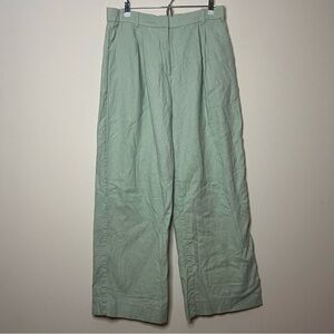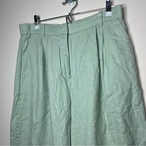 A+F Sloane Linen Blend Green Pleated Preppy Full Length Spring Summer Trousers