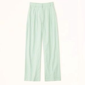 A+F Sloane Linen Blend Shamrock Green Pleated Preppy Full Length Spring Summer Trousers