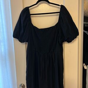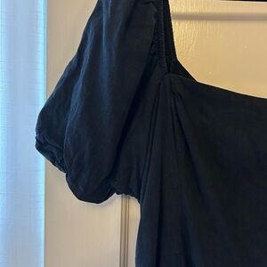 A&F Smocked Black Linen Mini Dress with Bubble Sleeves in Size XL