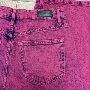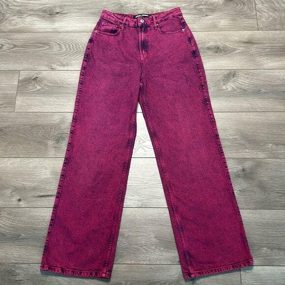 A&F Social Tourist Ultra High Rise Baggy Stretch Pink Jeans Size 28. Excellent condition! 99% cotton/1% elastane. Front zipper closure. Stretch denim. Color is a dark pink with a black grain. Inseam measures approximately 30 inches. See pictures for measurements.