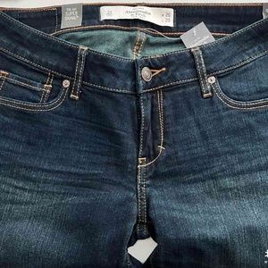 NWT Abercrombie and Fitch Super Skinny Jeans, color is dark wash, zip closure, size 2S (26 x 29), 99% cotton 1% elastane