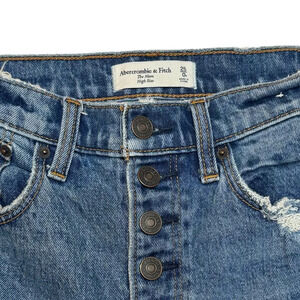{A&F} "The Mom High Rise" Short Petite Tapered Straight Leg Stretch Denim Jeans