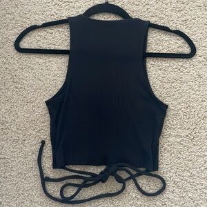 The ties tie around your waist. Super comfortable fabric but no longer wear.