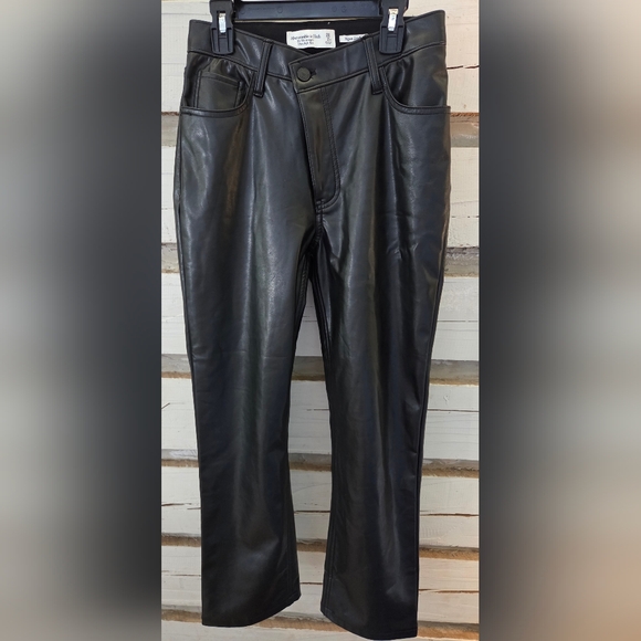 Like new A&F 90s straight style/ultra high rise black vegan leather pants. Size 26, 25 inch inseam. No flaws.