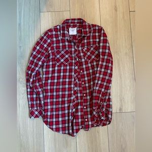 Red checked Abercrombie flannel shirt. Good length and super soft. Good used condition, no heavy signs of wear.