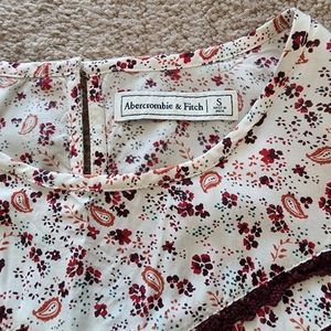 A&F floral crop top. 2 button back. Ruffle sleeve and cropped. 2 Chevron quilt stripe on front and 1 on back.